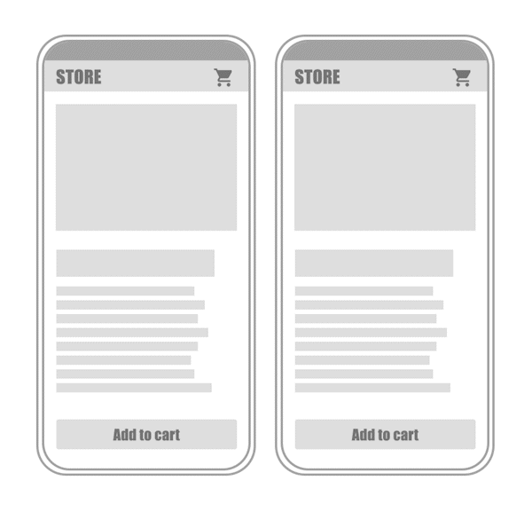 Vasemmalla esimerkki huonosta vasteajasta. Koriin lisäämisen jälkeen käyttöliittymällä kestää reagoida käyttäjän syötteeseen – INP on siis huono. Oikeanpuoleisessa esimerkissä sivusto toimii nopeammin ja INP on parempi.