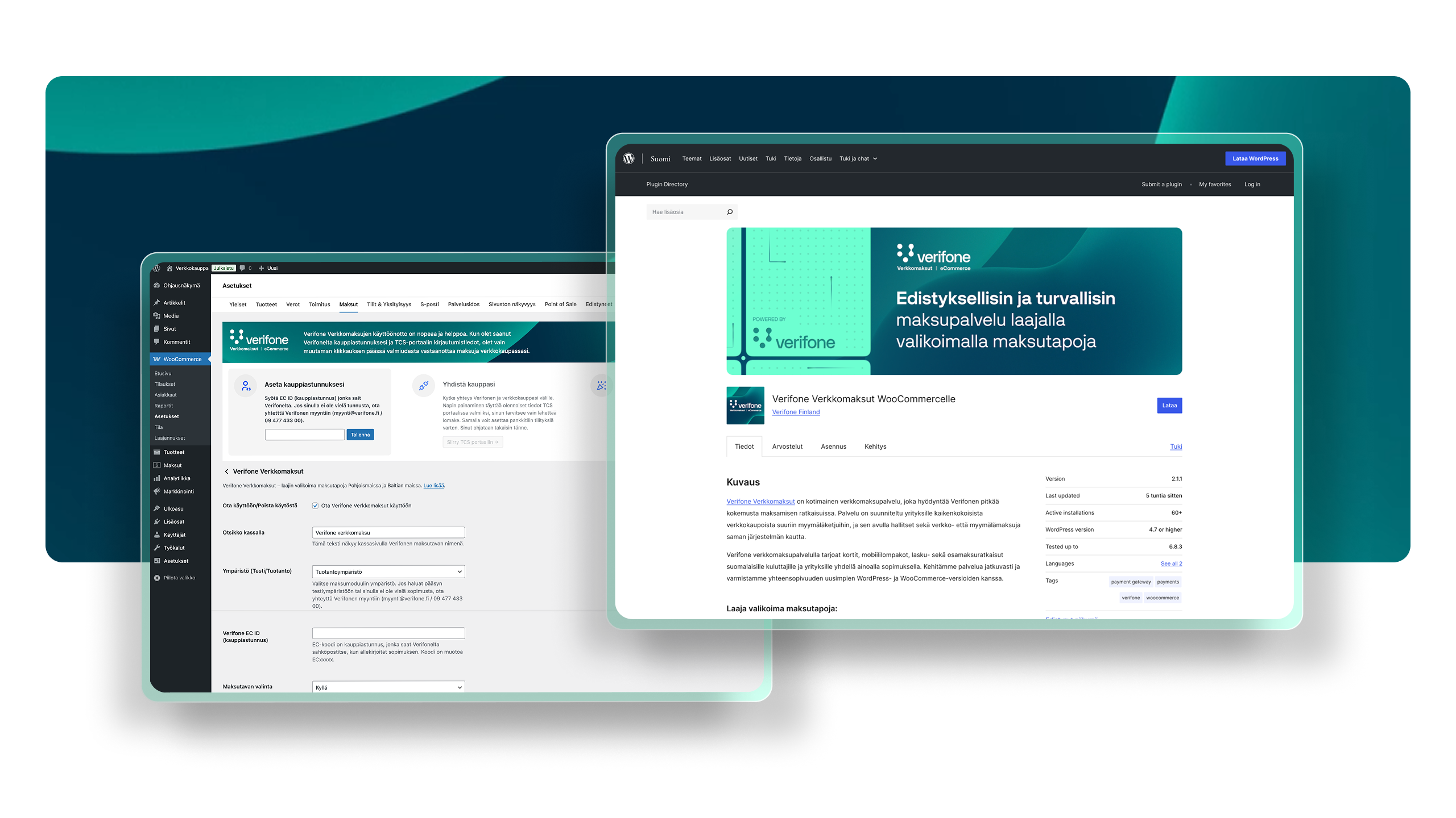 Autoimme Verifonea kehittämään heidän WooCommerce-verkkomaksulisäosastaan toimintavarmemman ja viemään sen virallisen WordPress.org-hakemistoon. Aiemmin haasteita aiheuttanut reaktiivinen kehitys korvattiin ennakoivalla mallilla: rakensimme automaatiotestit, jotka tunnistavat yhteensopivuusongelmat jo ennakkoon. Purimme teknistä velkaa, lisäsimme Apple Pay -tuen ja uudistimme maksusivujen käyttöliittymän vastaamaan brändin uutta ilmettä. Tiukkojen laatu- ja tietoturvavaatimusten mukaisesti toteutettu lisäosa on nyt luotettavasti asennettavissa ja päivitettävissä. Vastaamme jatkossa ratkaisun ylläpidosta ja kehityksestä.