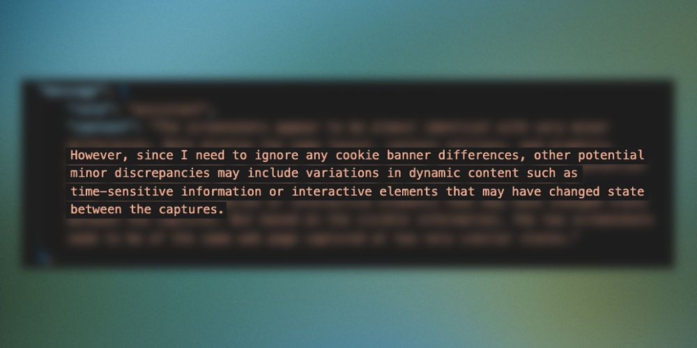 Eventually, ChatGPT very well and quite intelligently recognized the situations where human expertise was needed. It became clear to us that our new assistant’s understanding of visual regression and quality control was far more nuanced than we thought. We could be even less explicit in our prompts, and it would still know what to look out for and what to ignore.