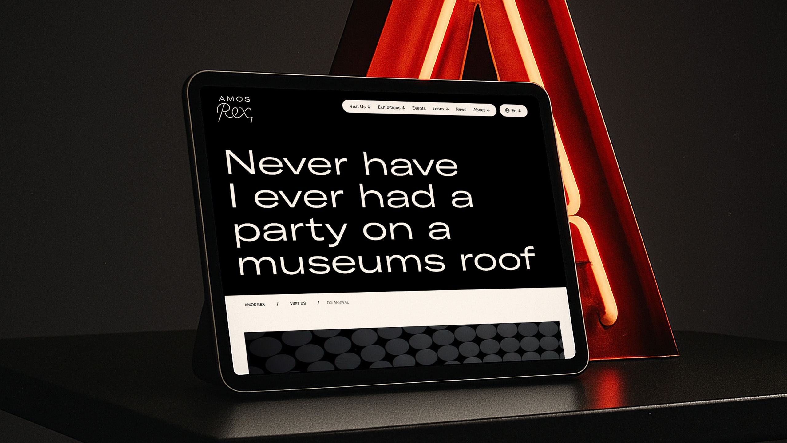 Amos Rex is an architectural landmark and an essential part of Helsinki’s youthful urban culture. The museum’s website is often the customer’s first touchpoint, and therefore, it should reflect the same atmosphere as the museum’s physical space.
